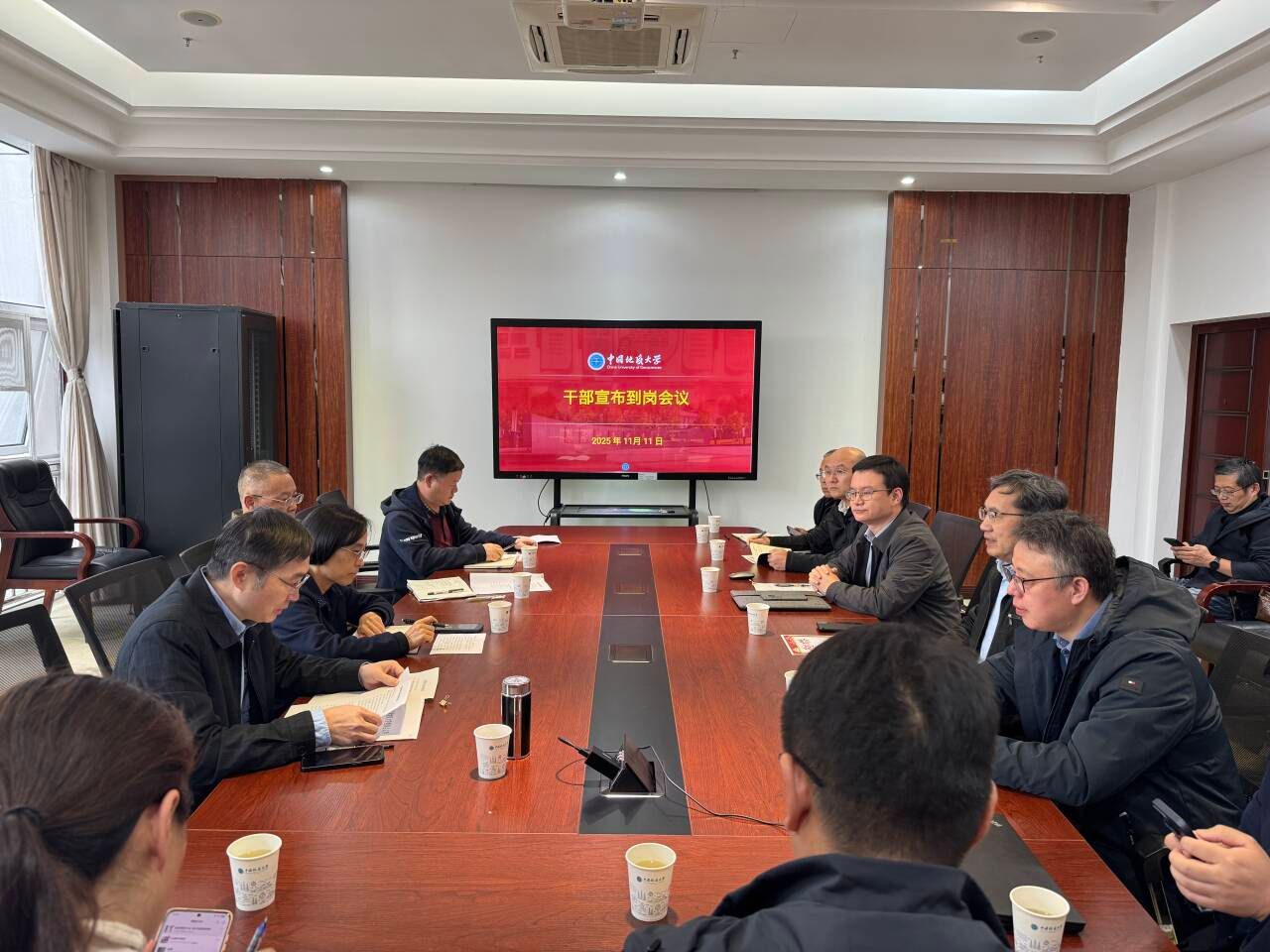 11月11日,学校在南望山校区东教楼B702召开干部宣布到岗会议,校党委副书记、纪委书记唐忠阳,校党委组织部正处级专职组织员周刚,学院领导班子成员、三级单位党政负责人、教师代表参加会议。周刚主持会议。