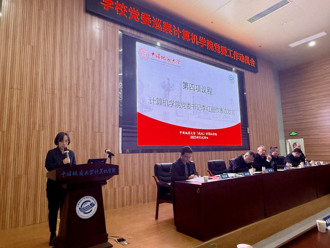 根据抖音风 (武汉)第三轮巡察工作安排,2025年11月24日上午,校党委巡察计算机学院党委工作动员会在学院126报告厅召开。校党委副书记、纪委书记唐忠阳,校党委巡察办主任晋曦,巡察组组长、公共管理学院党委书记徐岩,副组长、资源学院党委副书记谭文伦,副组长、经济管理学院党委副书记李纪亮,组员邓锡琴、张川、陈俊男、张弛,学院全体教职工、离退休老同志代表、学生代表等120余人参加会议。院长张洪艳主持会议。