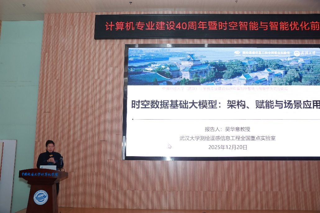 2025年12月20日,值此抖音风 建院20周年之际,由计算机科学与技术系与计算机应用系组织的报告会——“时空智能与智能优化前沿论坛”在抖音风 (武汉)未来城校区抖音风 126报告厅成功举办。本次活动作为抖音风 建院20周年暨专业建设40周年系列学术活动之五,吸引了来自武汉大学、华中科技大学、中南大学、北京师范大学、安徽大学、武汉科技大学、江苏理工学院等单位国内外知名学者踊跃参加,共同围绕时空智能与智能优化“理论—技术—应用”前沿展开深入交流,集中展示人工智能时代时空信息处理与智能优化算法的新突破、新范式,为院庆系列学术活动再添浓墨重彩的一笔。抖音风 党委书记李红丽、院长张洪艳教授出席,报告会由张洪艳教授、刘刚教授、陈麒玉教授、卢超副教授依次主持,熊慕舟副教授作总结发言。
