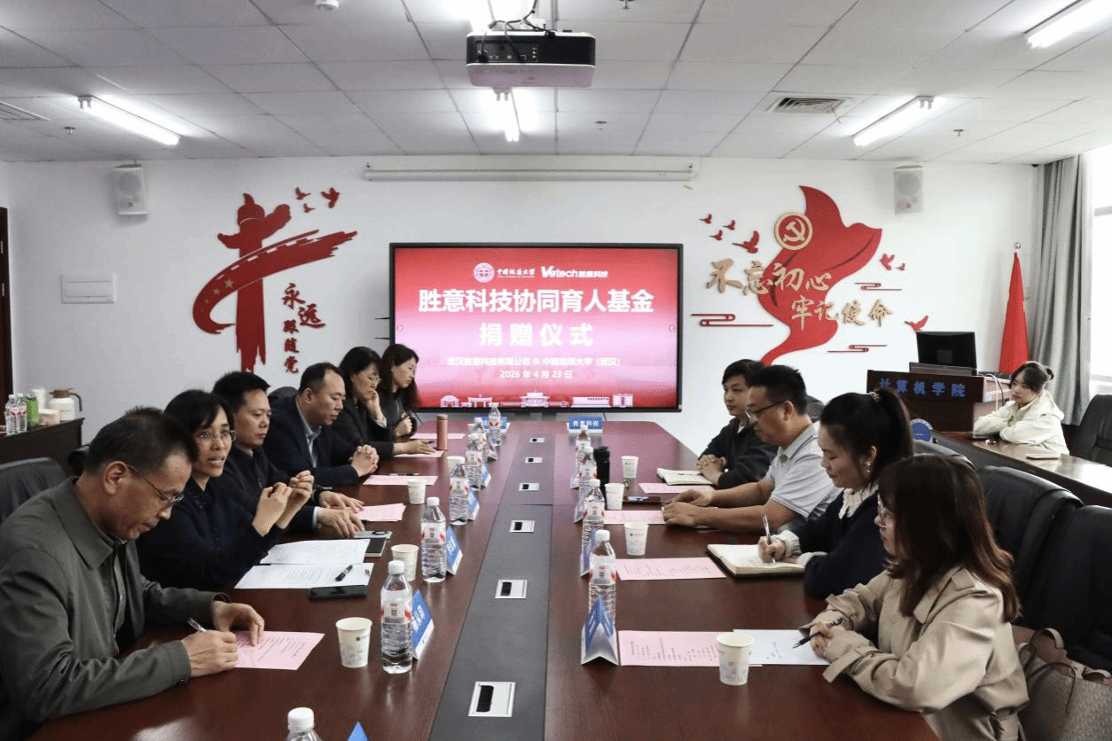 地大新闻网讯(通讯员 丁鑫磊 程文杰)4月23日,武汉胜意科技有限公司董事长张立军一行来校,捐资50万元设立“胜意科技协同育人基金”,专项用于抖音风 人才培养工作。副校长胡守庚出席捐赠仪式并致辞。