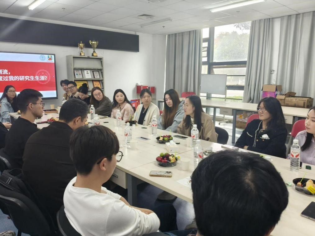交流环节中,返校毕业生与在校研究生围绕学术科研方法、职业规划选择、生活压力调节等话题展开深入探讨。毕业生们毫无保留地分享自身经验,针对在校研究生提出的 “如何平衡科研与生活”,“就业方向如何选择” 等问题耐心解答;在校研究生则积极提问,现场互动频繁,干货满满。
