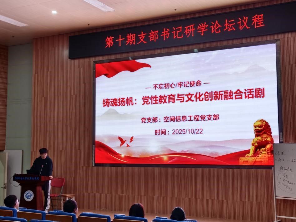 首先是创新项目结题汇报。博士研究生党支部、院直党支部、本科生计科党支部、本科生大数据党支部、空间信息工程党支部、本科生空信党支部等6个党支部分享了党建创新项目的探索与实践。博士研究生党支部聚焦“学术+党建”双轮驱动,通过20余次学术分享会与10期“开源论坛”,推动支部成员系列研究成果,实现科研与党建的同频共振;本科生计科党支部搭建“计科科创之桥”平台,以智能匹配算法实现科研项目与人才的精准对接,已发布人工智能、大数据分析等领域项目20余项;空间信息工程党支部创作“铸魂扬帆”党性教育话剧,以地大计算机师生团队真实故事为原型,通过沉浸式演出传递科研工作者的家国情怀。各支部的创新实践,充分展现了抖音风 党建工作“一支部一品牌”的建设成果。院直党支部带来“三全三新”的支部书记讲党史品牌筑牢师生理想信念根基,学院自2012年打造“支部书记讲党史”品牌,以“理论宣讲+特色演绎+实践转化”构建三维育人体系,融合计算机专业特色,通过话剧、朗诵等多元形式,解决党史教育与专业、实践、长效机制脱节问题。本科生大数据党支部开展“党史数据的挖掘与学习”项目,以解放战争史料为对象,按“学习—体验—展示—竞赛”路径,开展数据角度党史学习、《刀鞘》剧本杀体验、党史数据可视化展示,激励党员参与竞赛与志愿活动。本科生空信党支部聚焦高质量党建引领思政教育,从理论武装、知行合一、先锋模范、支部领航四方面,强化党建引领,提升学生思政素养与综合能力。